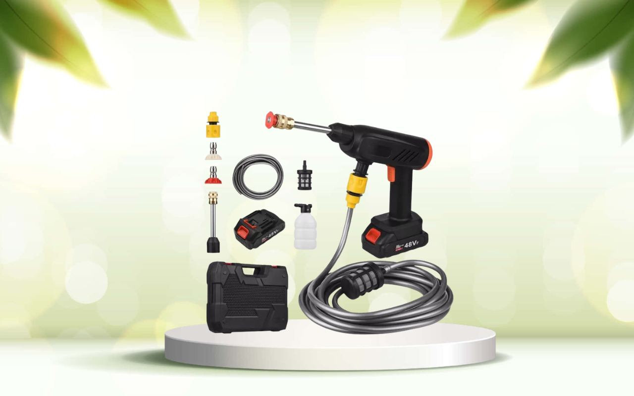 All’interno della confezione troverai tutto il necessario per iniziare subito a pulire: oltre alla pistola idropulitrice, riceverai il tubo da 5 metri, la batteria ricaricabile, il caricabatterie, il serbatoio per il sapone, il filtro anti-impurità, l’ugello 6-in-1 e la canna dell’acqua. Gli accessori sono di semplice utilizzo e garantiscono una pulizia professionale anche per chi si avvicina per la prima volta a questi strumenti.